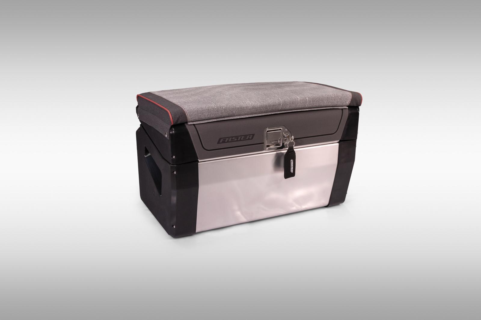 A seat cushion in stylish two-tone grey with red details. Suited for the 75 cm wide seat box. The DryFeel core ensures quicker drying compared to traditional materials. The cushion attaches to the seat box with snap fasteners and is compatible with seat boxes from model year 2025 onwards.