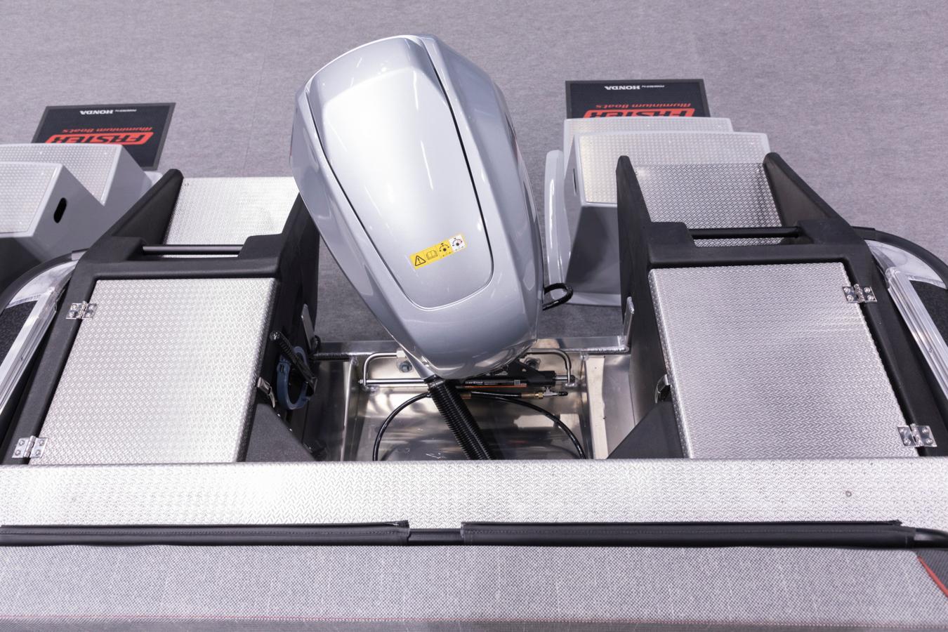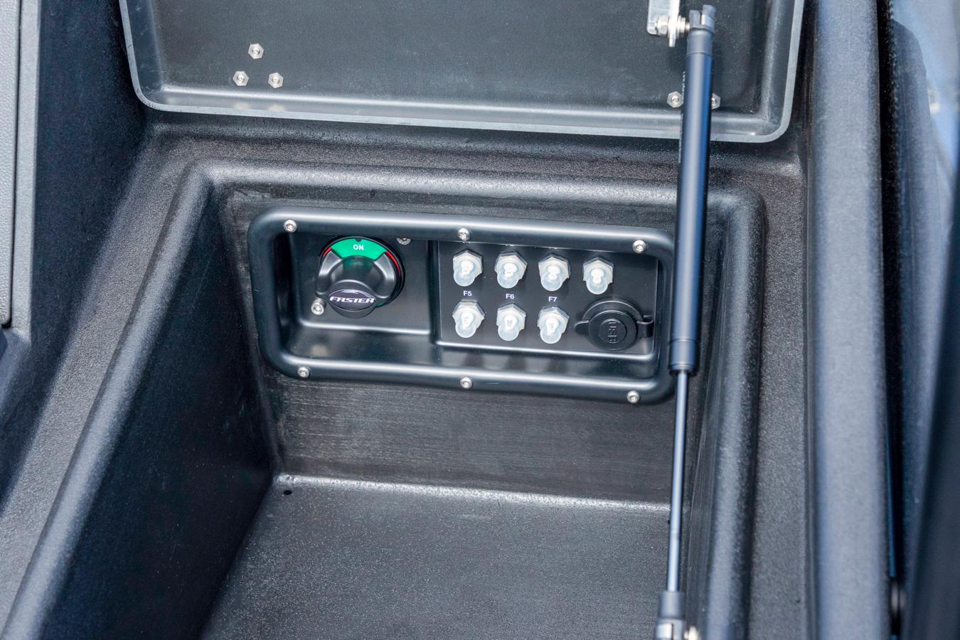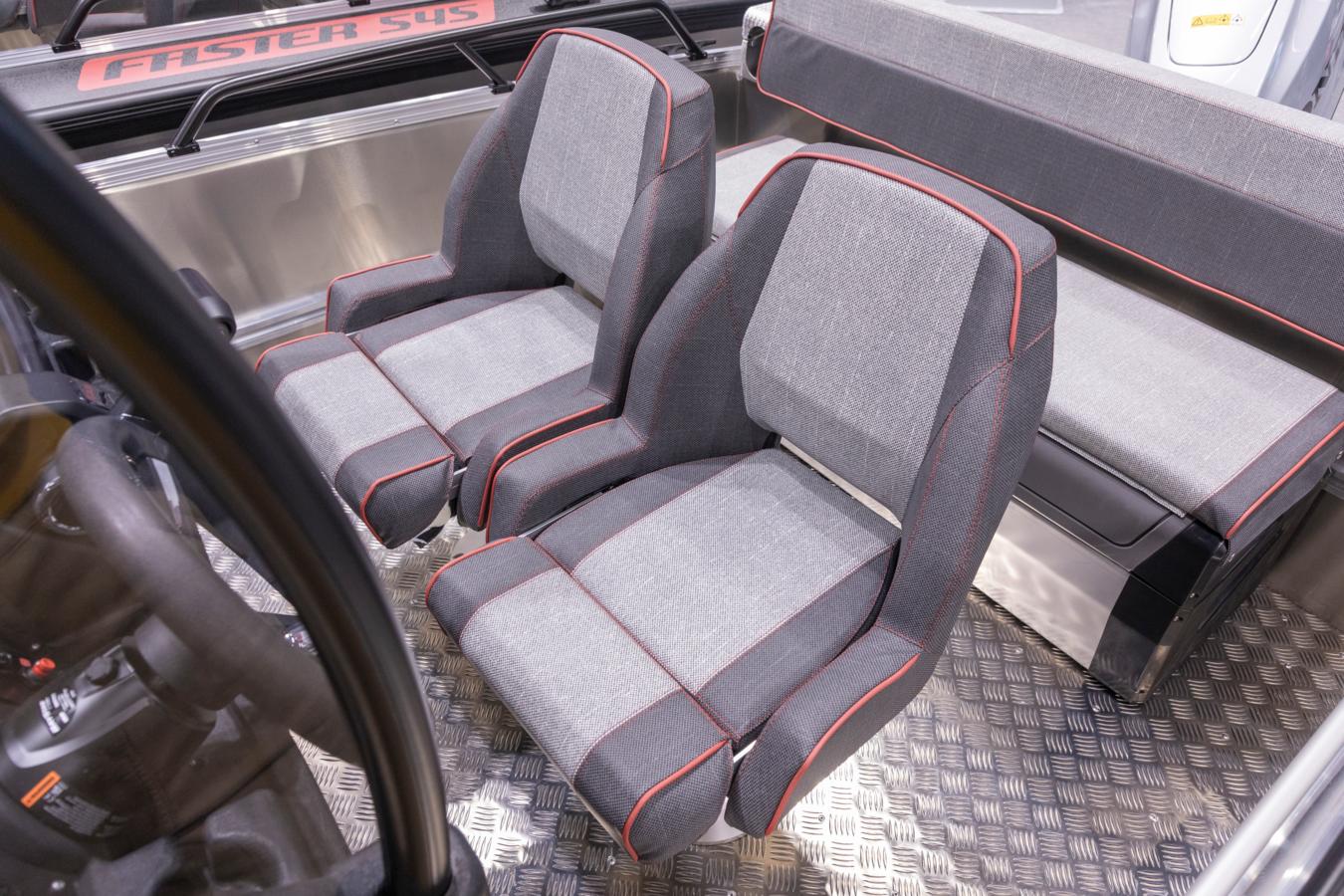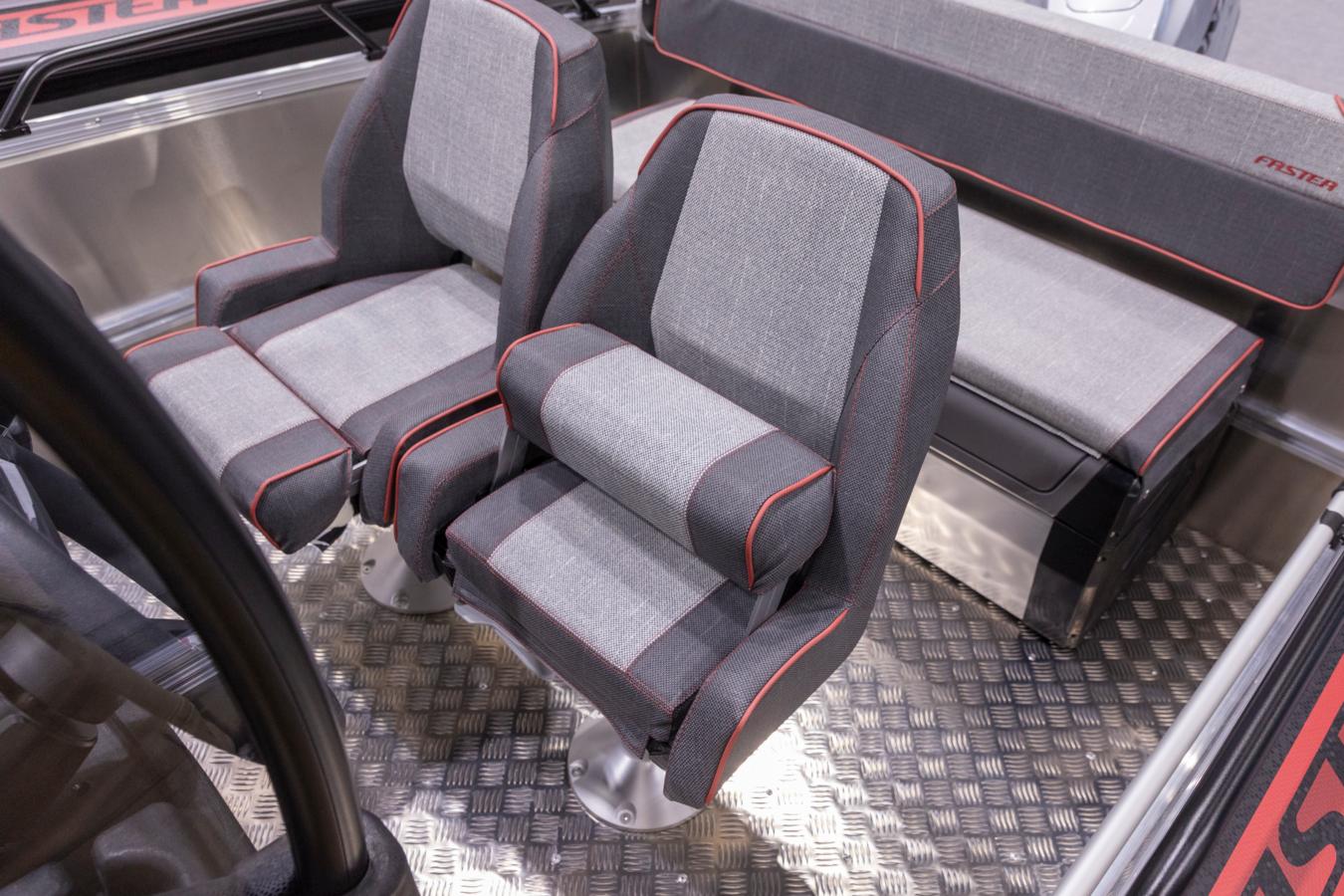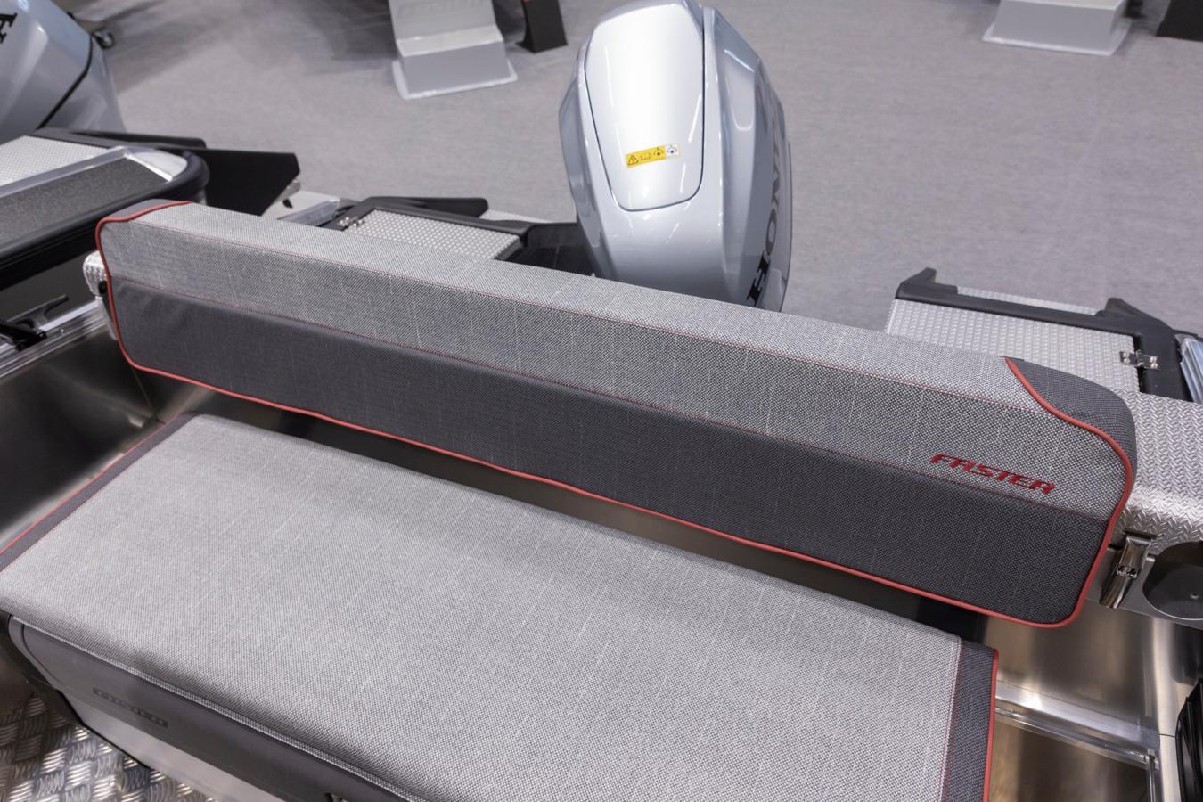 Faster’s unique aluminium accessory rails on the interior hull sides allow easy and quick installation of accessories without speciality tools. This makes the Faster boats easy to customise to your own needs, even if the needs change over time. We have designed a modular system for our accessories, where accessories are compatible across most Faster aluminium boat models. The comprehesive list of accessories includes e.g. a bow engine mount, differents sized seat boxes and folding seats, load securings lugs, canopies and covers, as well as rod holders and an targa arch above the console for convenient electronics installations.