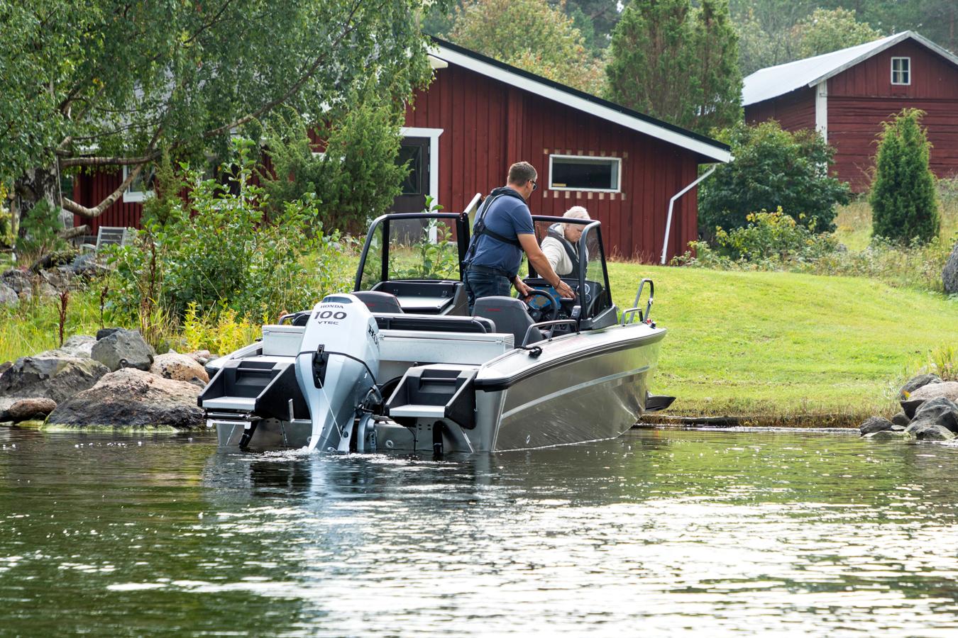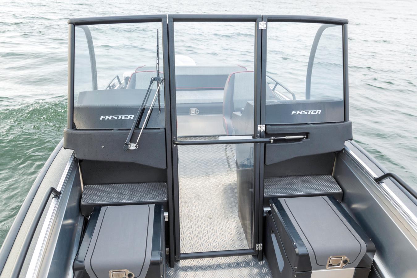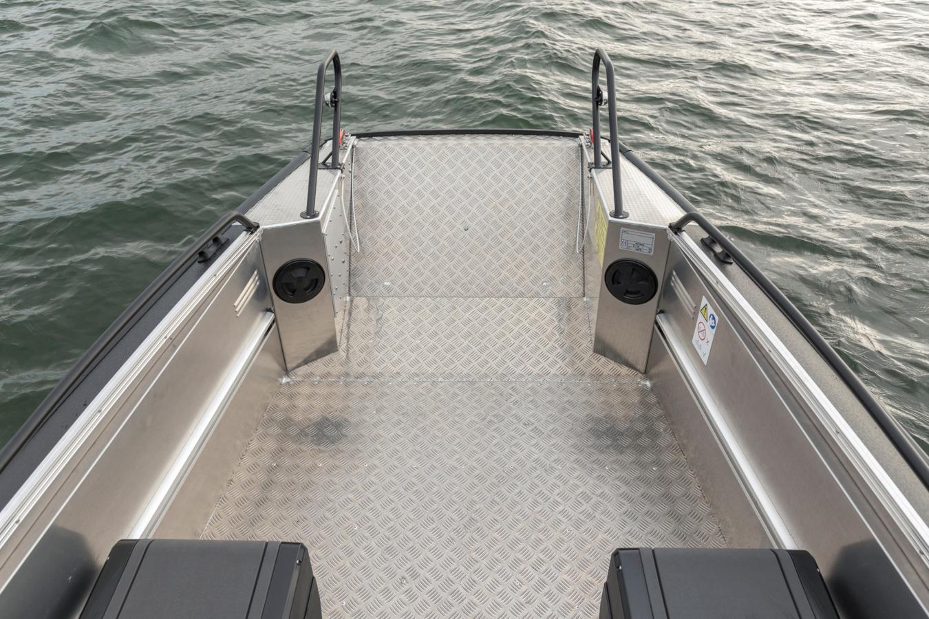 The bow ramp is a feature that must be experienced to fully appreciate its convenience and safety. Once you’ve tried a bow ramp equipped boat, returning to a boat with a traditional sharp bow shape can feel outright limiting. In both the Faster 545 and the Faster 635 models, the aluminium hull has been carefully designed and crafted to maintain Faster’s well-known smooth handling and outstanding performance, even with the bow ramp in place. The ramp is positioned high above the waterline so that it does not make contact with the water during navigation. This ensures that the driving characteristics and performance in all conditions are top-notch.