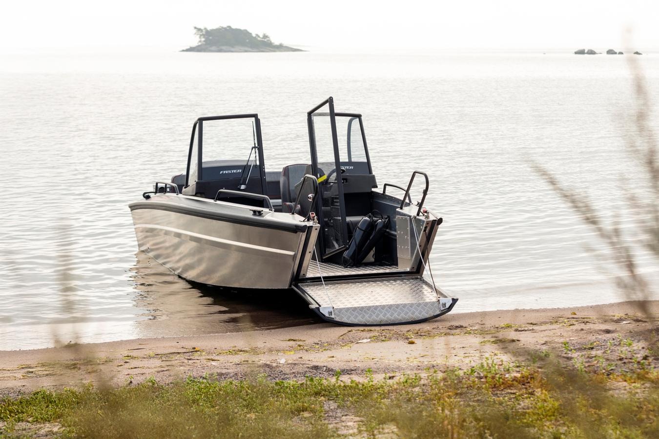 Bow ramps are by no means a new feature to Faster. Ramps of various sizes have been used for many years in Faster’s professional workboats that are trusted by fire departments, police forces, and oil response workers worldwide. Tested extensively in demanding professional use, you can rely on the ramp to perform safely and effectively in your own recreational or work-related activities.