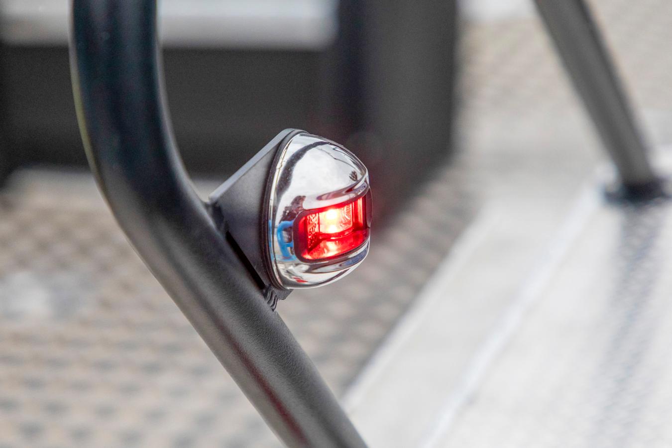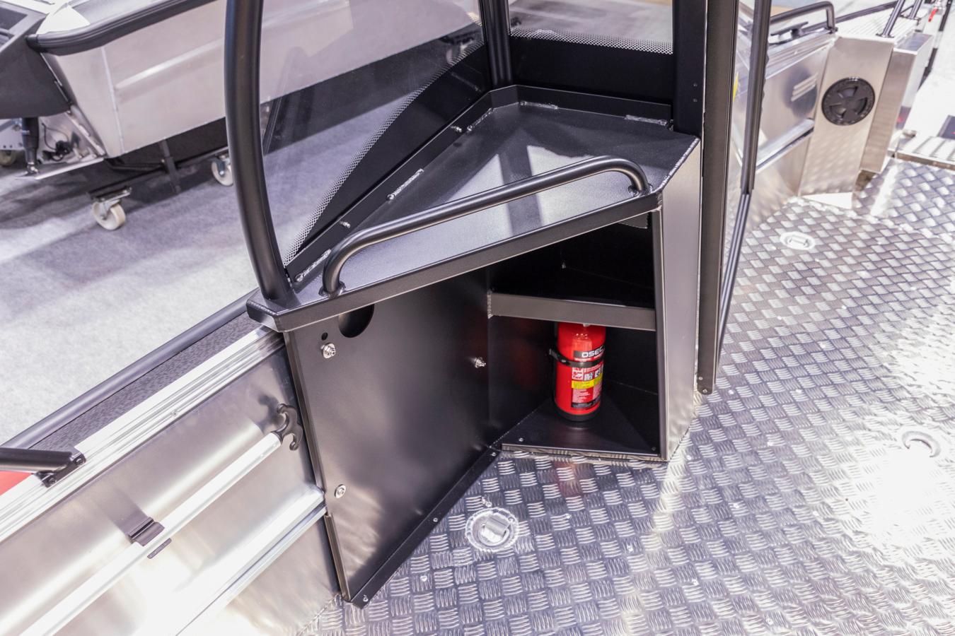The placement and shape of the consoles have been carefully planned. The driver’s console is familiar from the standard 545 SC model, but the co-pilot’s console has been replaced by a narrower tabletop and a handrail to allow safety, as well as better access to the door. The narrower port side console ensures more space to turn around in the stern cockpit even when operating from a wheelchair. The protective door between the desks has been widened to make it easier for wheelchair users to pass through.