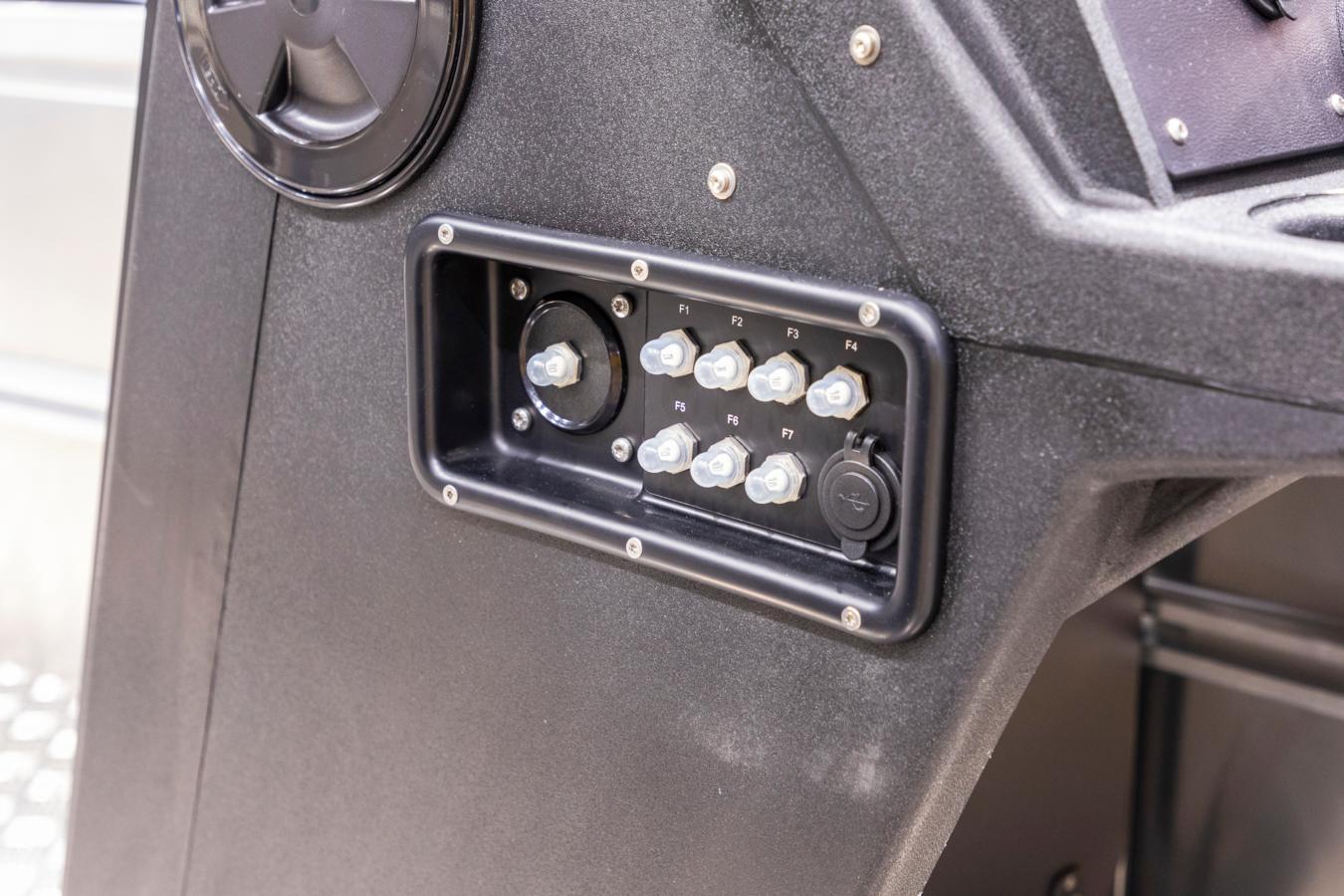 - Hydraulic bow ramp, switch on the dashboard + separate remote