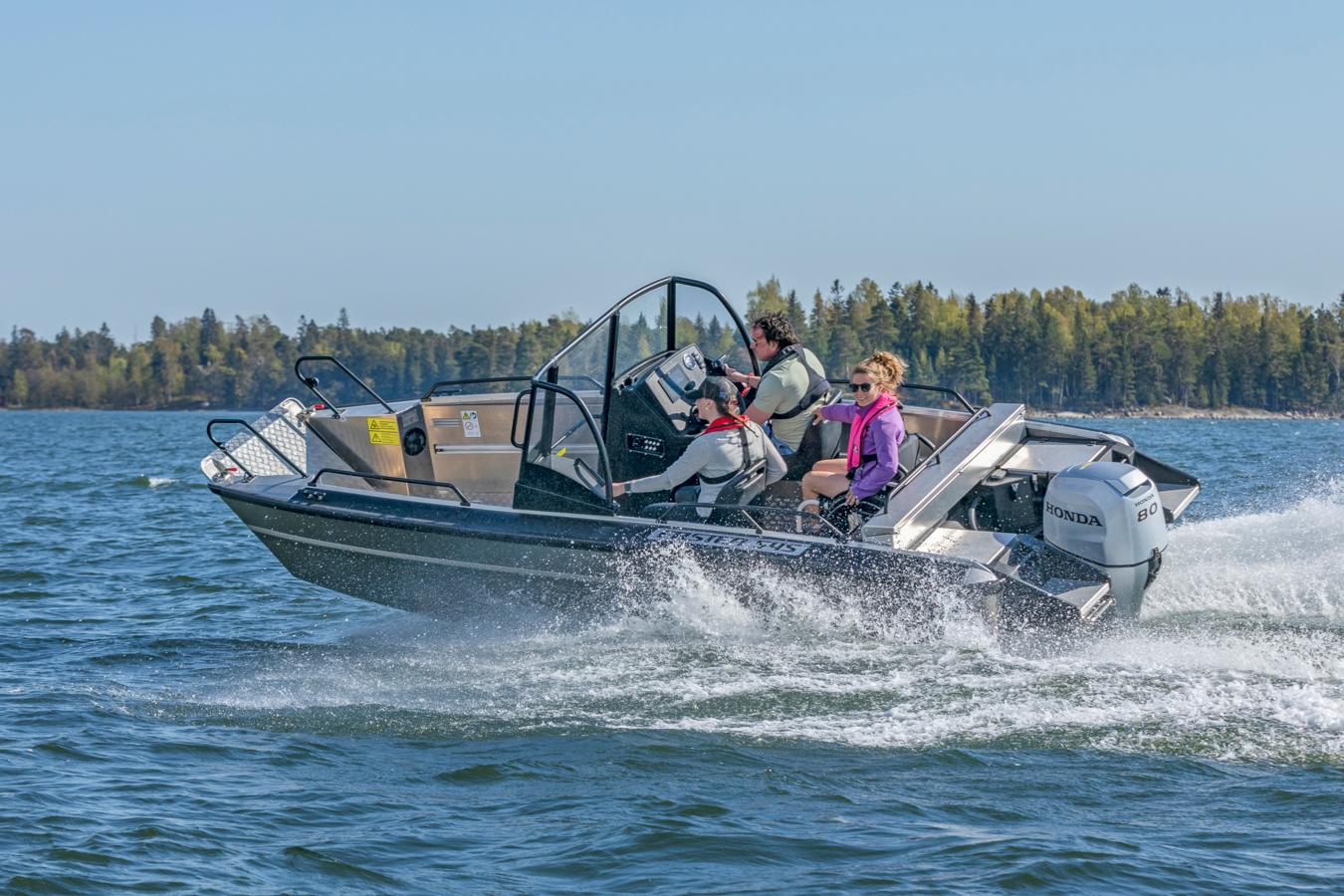 Despite their relatively compact size, the Faster 545 models are in a class of their own in terms of carrying capacity. In addition to the eight-person capacity, the boat can carry up to 125 kg of luggage and other gear. Even though the boat would be fully loaded, it still drives smoothly through choppy seas.