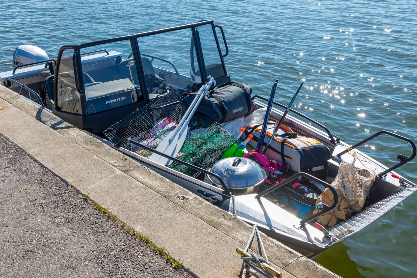 As with the other Faster models, the versatility and adaptability are some of the 545 SCA’s greatest assets. Faster’s familiar accessory mounting rails run along the boat’s inner hull sides, making it easy to attach any accessories you might need without separate tools. The list of accessories includes for example load-binding hooks, rope boxes, additional seats that double as storage boxes, fender racks and an anchor holder. Behind the windscreen there is space for two removable shell seats. One seat is delivered with the boat, and it can easily be removed without the need for separate tools.