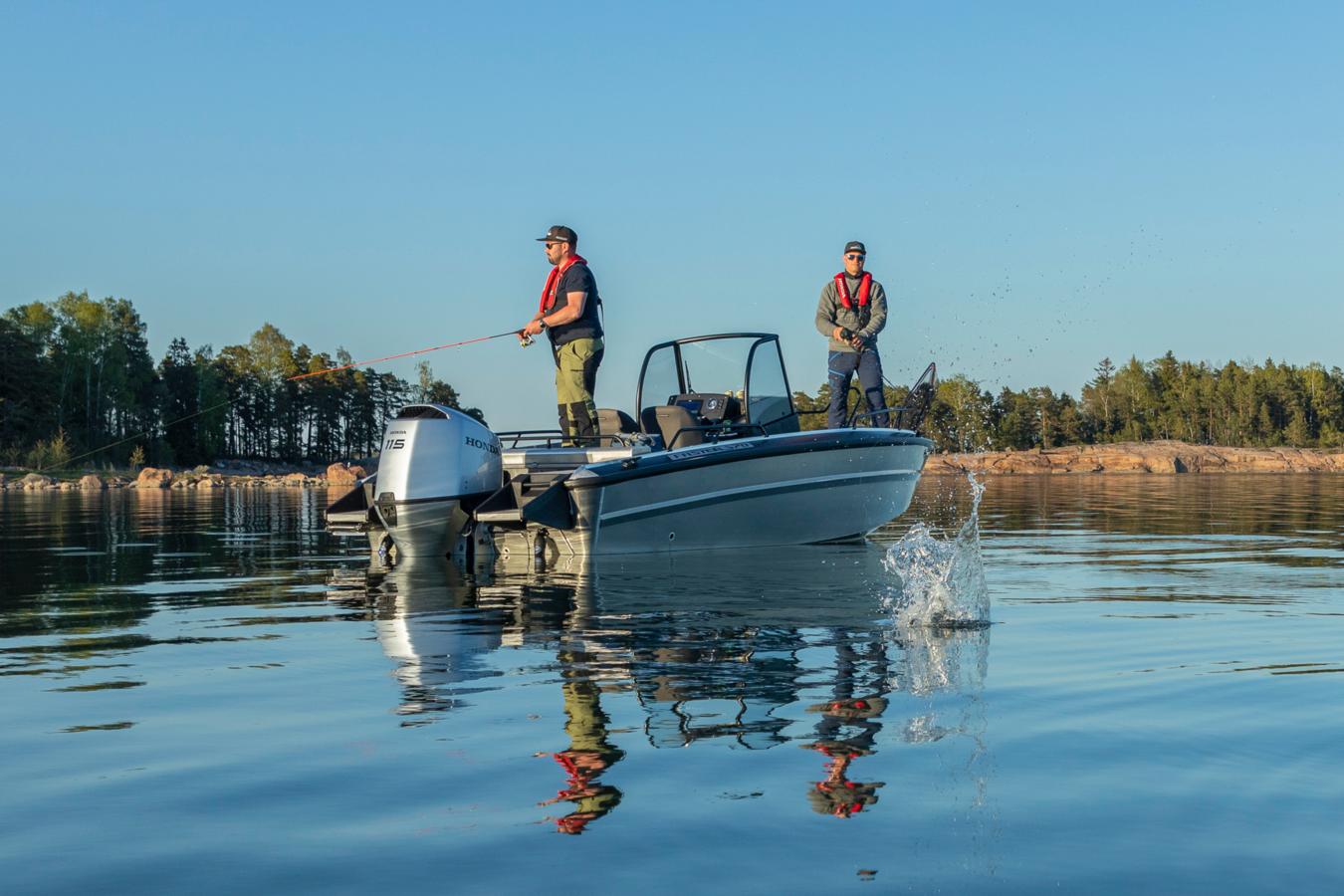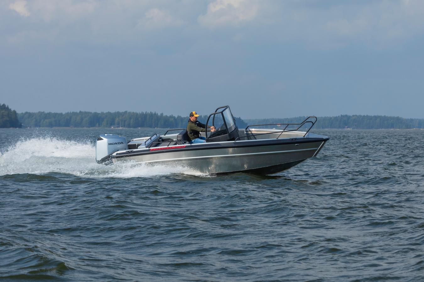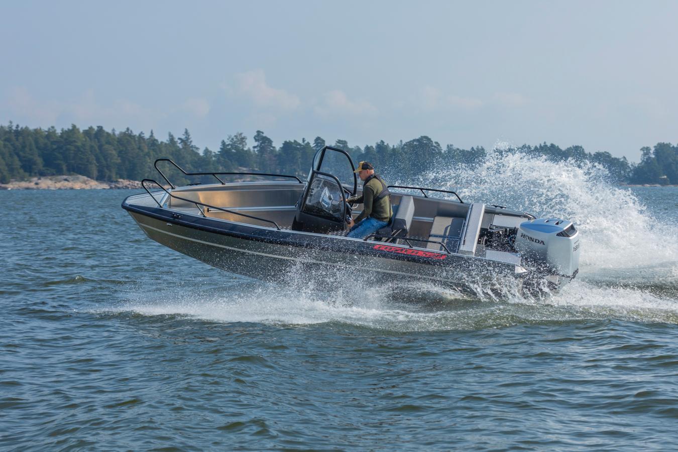 The open bow and wide walkways provide plenty of room for passengers and gear. Thanks to the spacious layout and the centrally placed steering console, moving around on board the boat is safe and easy. Plenty of open deck space ensures that you can utilize the space to the max, whether it be for load carrying, fishing or passenger transporting.