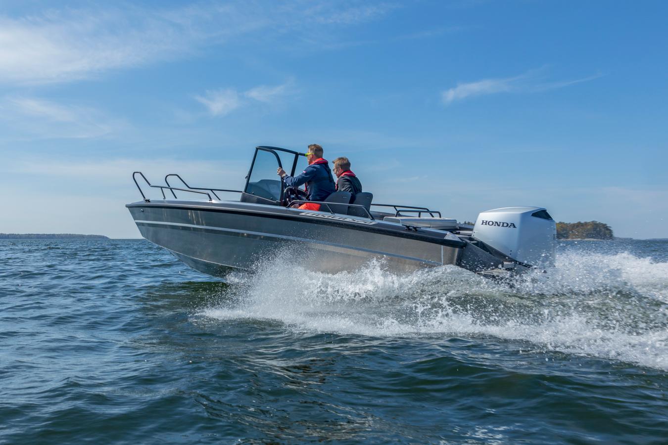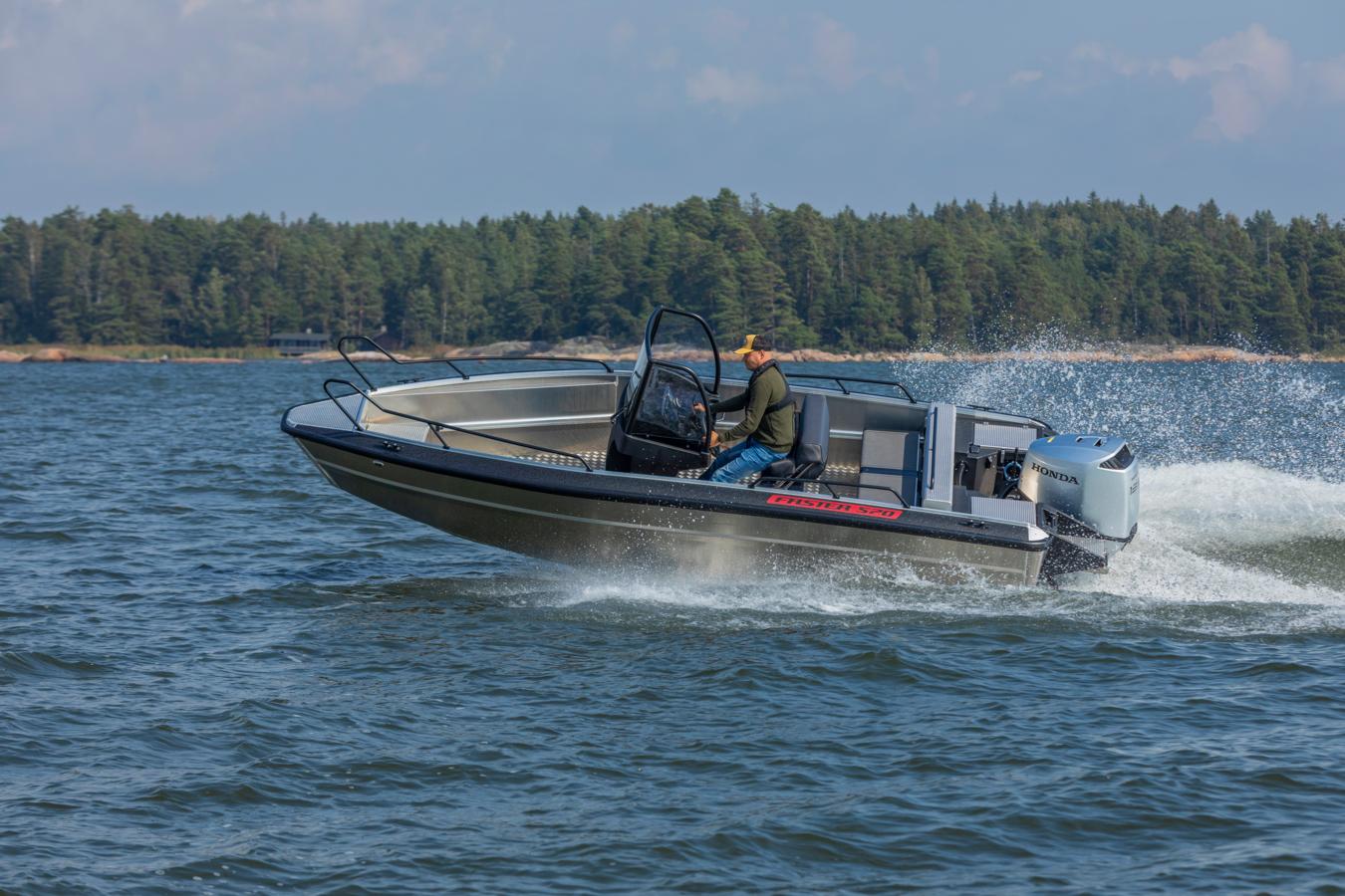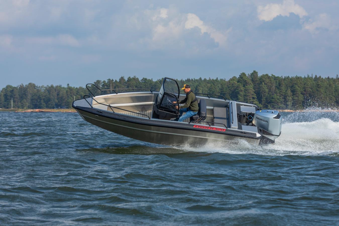 Faster 570 CC is a durable pure aluminium boat that is easy to handle and drives well. It is designed for boaters who value stability, safety and straightforward usability. Whether heading out for leisurely family trips or intensive fishing excursions, transporting gear to the summer home or simply navigating changing weather conditions while making your way through the waves, the 570 CC offers reliable performance and a smooth ride.