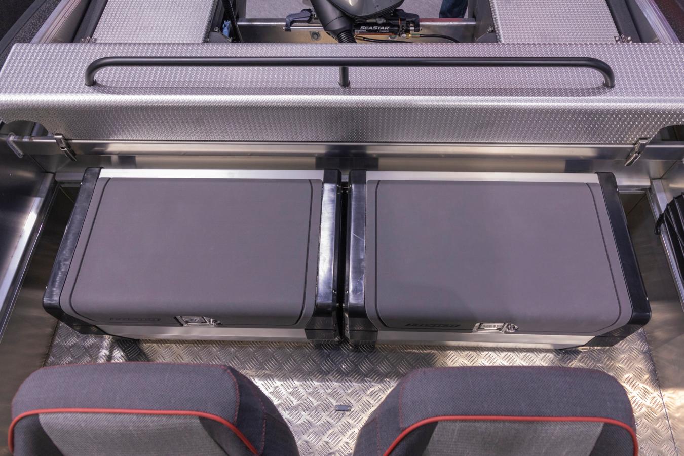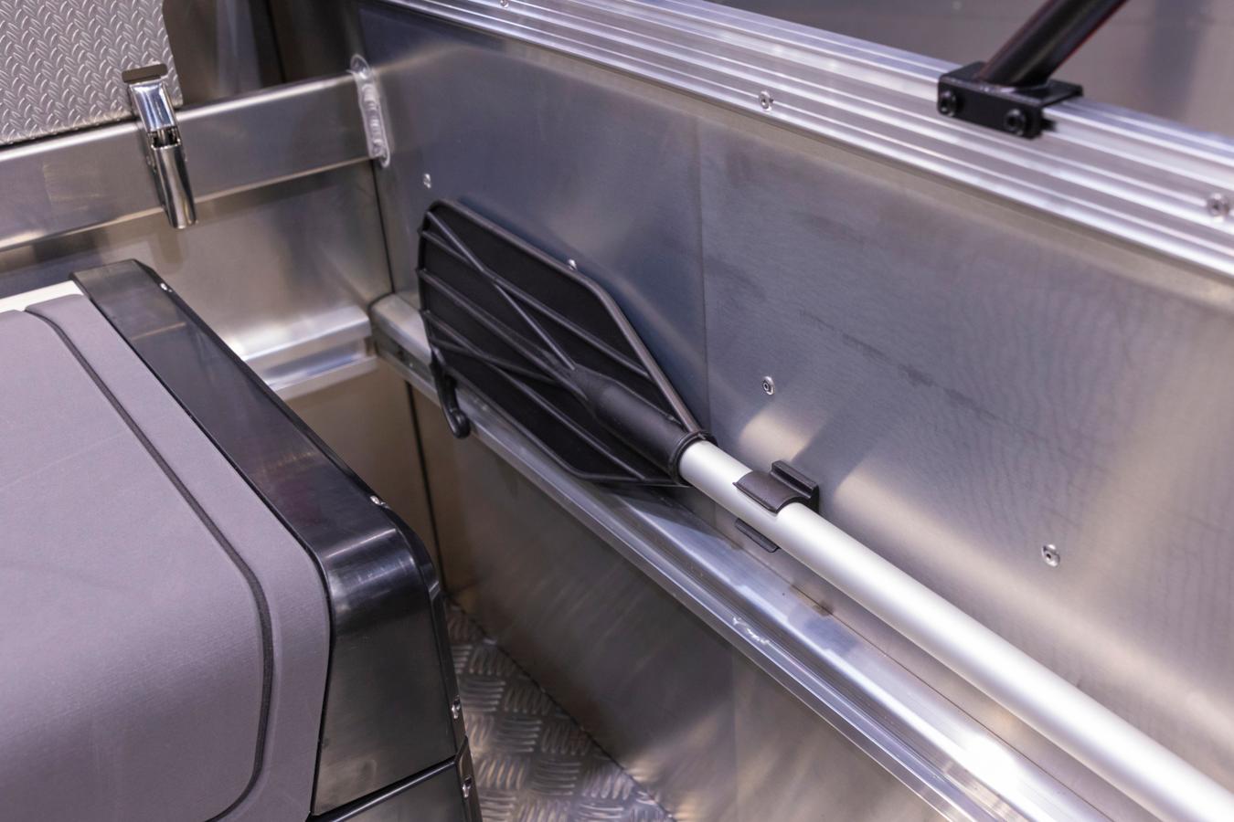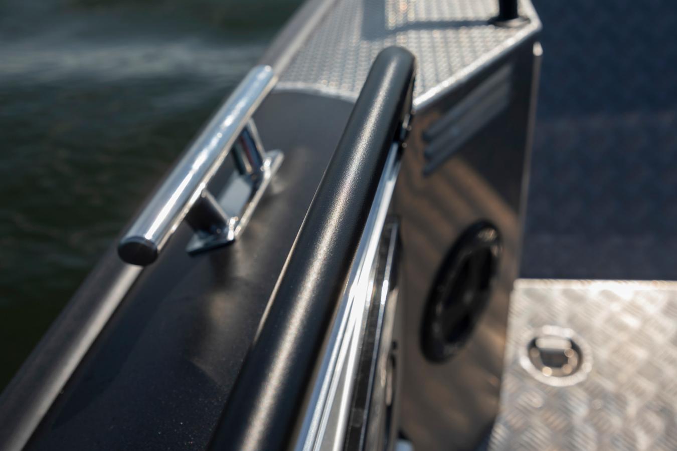 Smart quick fix equipment rails run along the inner broadsides and on the front side of the steering console. On this aluminum C-rail it is easy to mount different storage/seating boxes, fender holders and load binders to make the boat suited to your specific needs. With the different seat boxes available, it is possible to seat up to 10 people in this multi-functional aluminum boat – this solution also gives you a huge amount of storage as the boxes function as storage compartments at the same time.