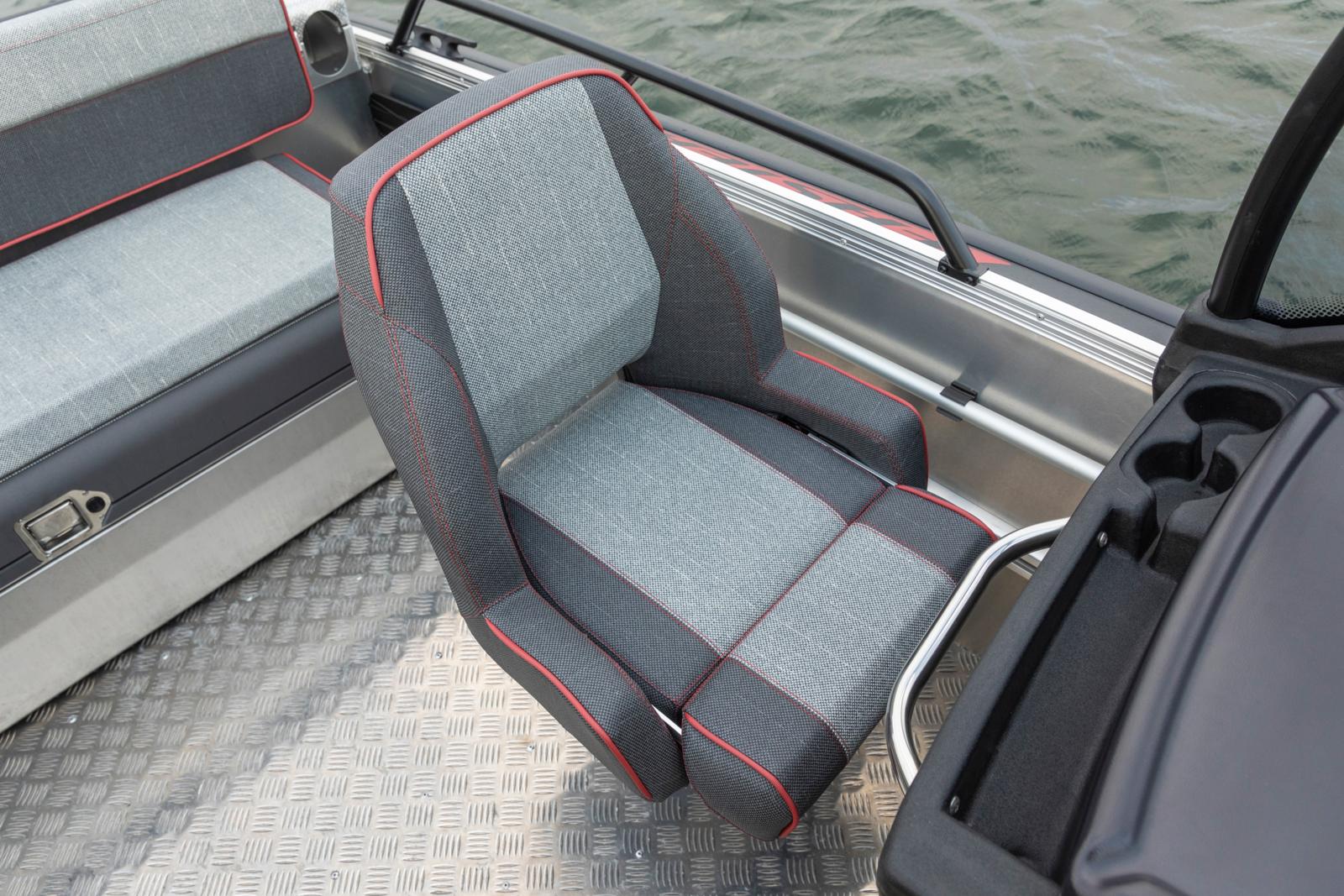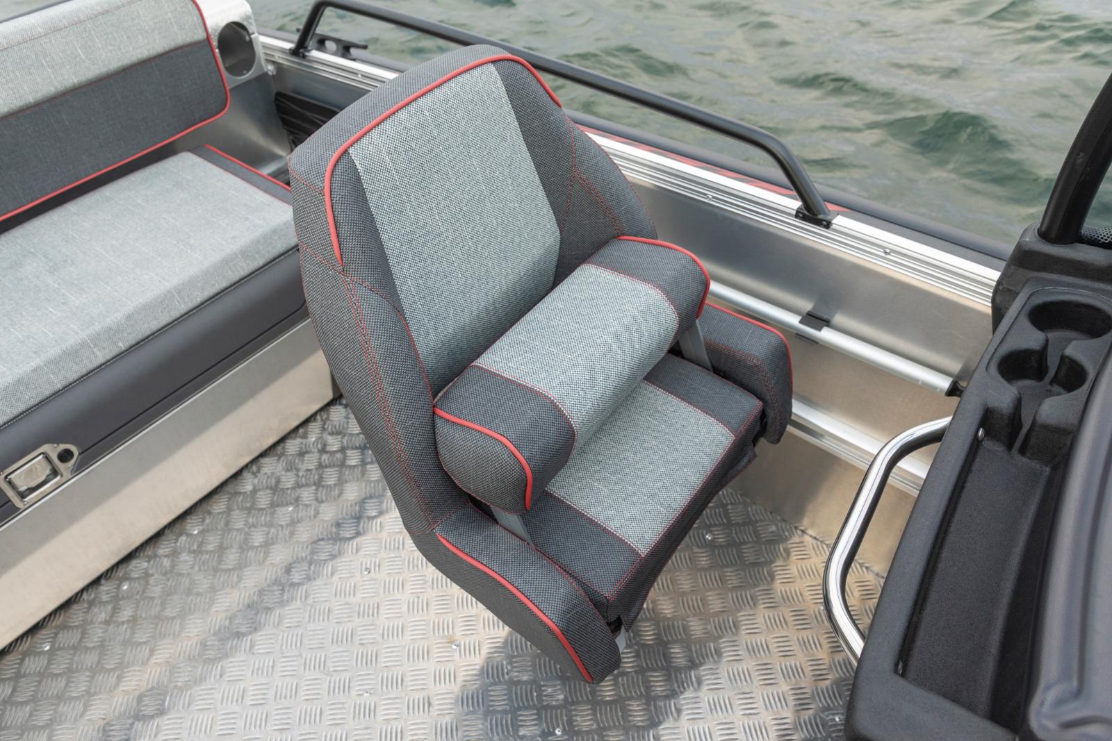 Uuden sukupolven Comfort-istuin 545 SCA-mallin apukuljettajalle (PP). Tyylikäs 2-sävyinen harmaa väritys punaisilla yksityiskohdilla. Hinta sisältää istuimen suojahupun. HUOM! Kuva suuntaa-antava ns. vakioveneen komfort-istuimesta.